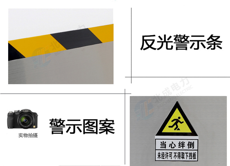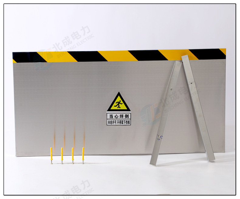 新型鋁合金材質擋鼠板替代老式擋鼠板材,實用、結實、耐用、使用時間長。由擋鼠板主板面和卡槽夠成,外觀可見部分為鋁合金定制,且貼有黃黑色的反光警示貼。